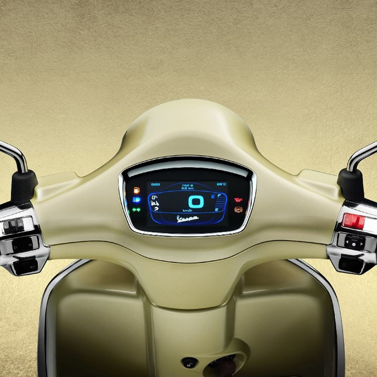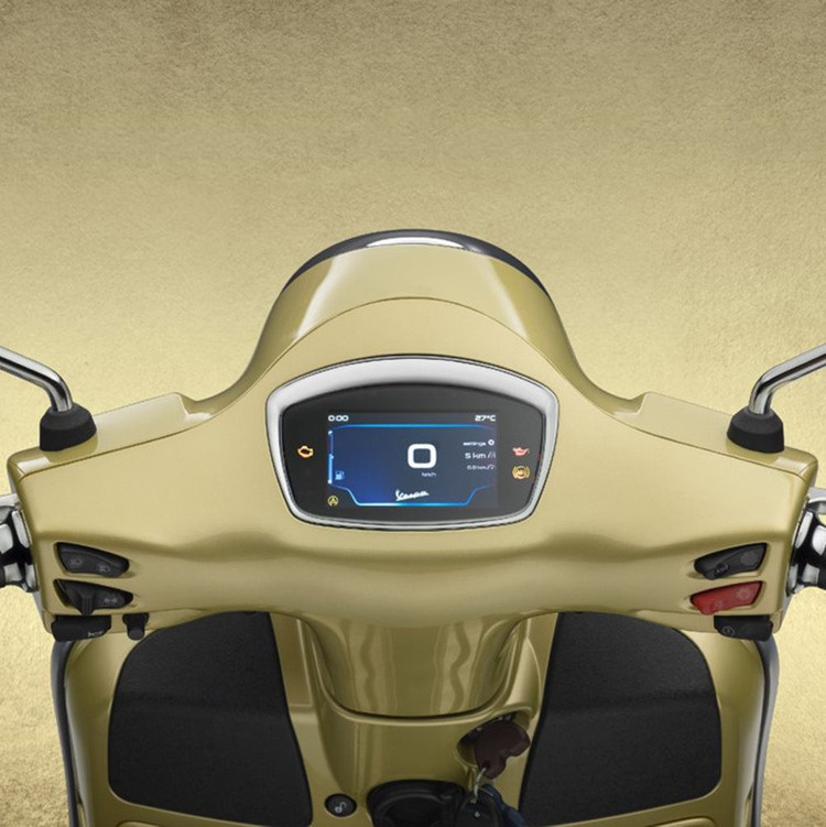 Được phát triển riêng cho phiên bản đặc biệt này, màu vàng ánh kim vừa thể hiện tính di sản vừa gợi lên tinh thần đổi mới và tính thời trang của Vespa.