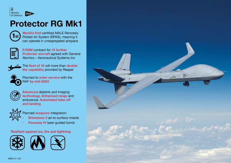 Chiếc cuối cùng trong số 10 UAV Reaper đã ngừng hoạt động vào ngày 30 tháng 9. Các UAV Protector hiện đang được tích hợp vào các hoạt động của RAF, cụ thể là cho các nhiệm vụ tình báo, giám sát, bắt mục tiêu và trinh sát (ISTAR), bên cạnh khả năng tấn công.