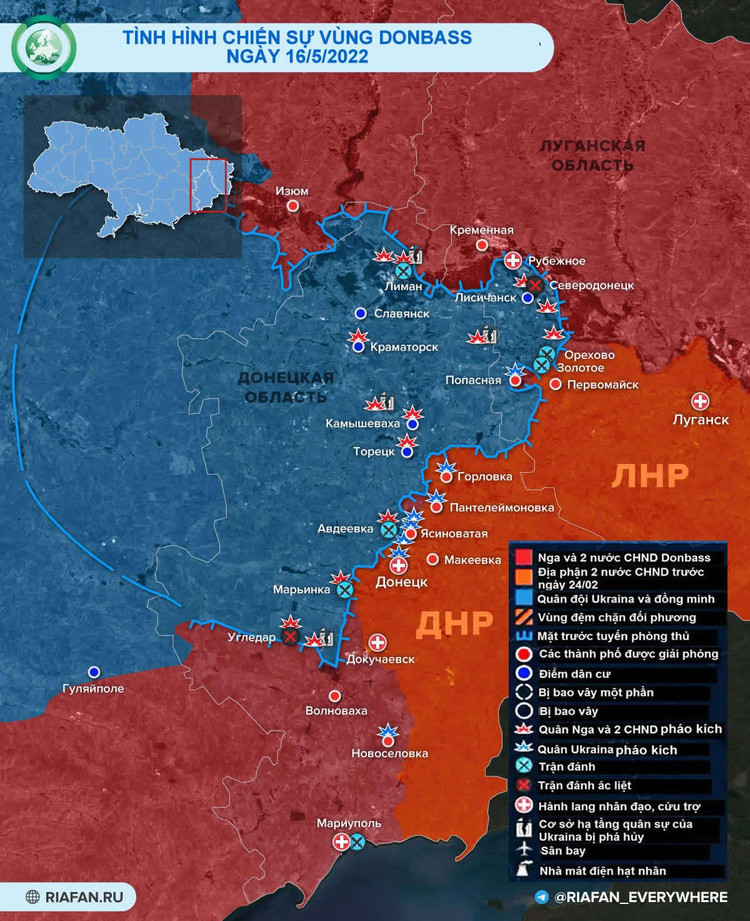 Tình hình chiến sự vùng Donbass ngày 16/5/2022. Ảnh RIA.FAN