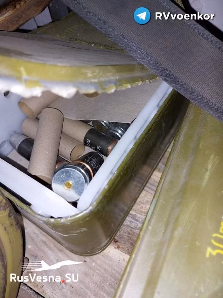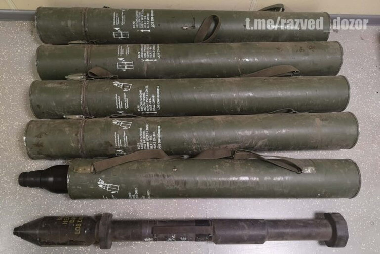 Một số đầu đạn và liều phóng của súng phóng lựu chống tăng phương Tây do quân đội Nga thu giữ được trên chiến trường. Ảnh RusVesna