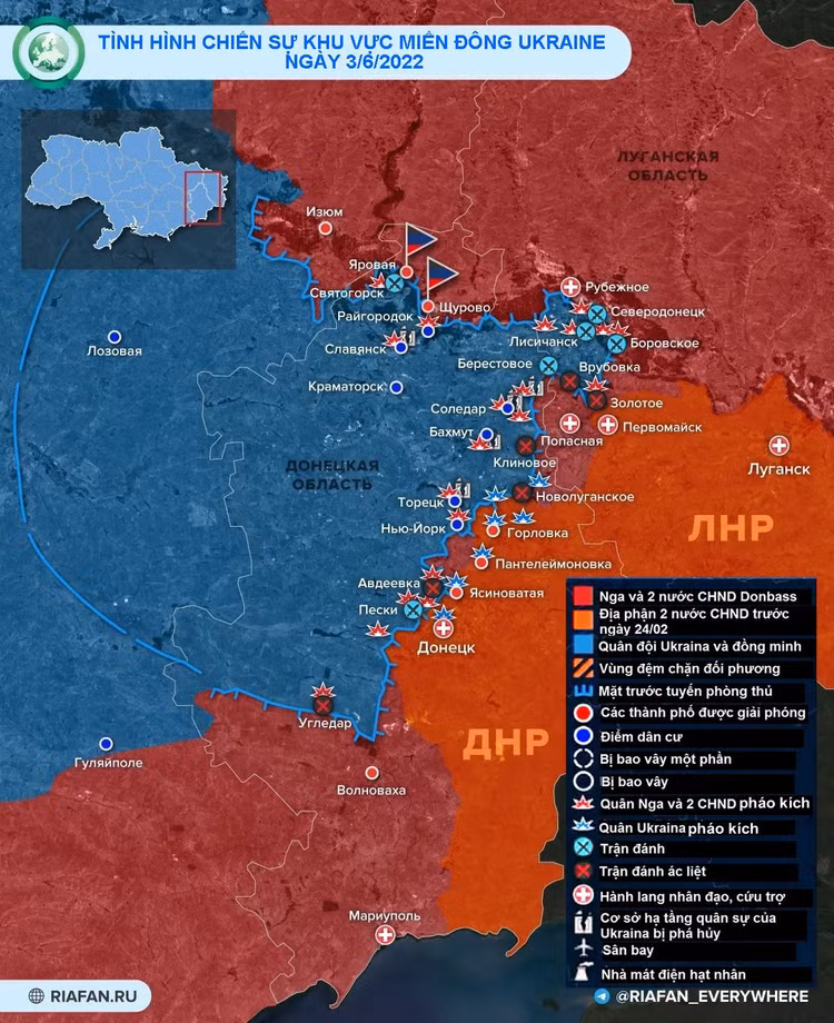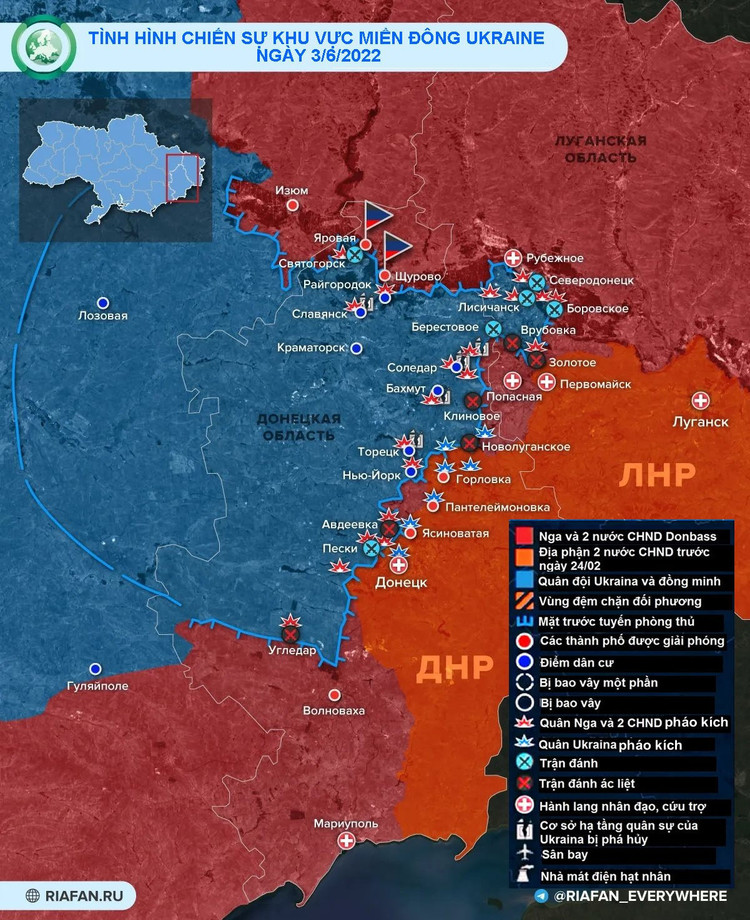 Tình hình chiến sự khu vực miền đông Ukraine ngày 3/6. Ảnh RIA.FAN