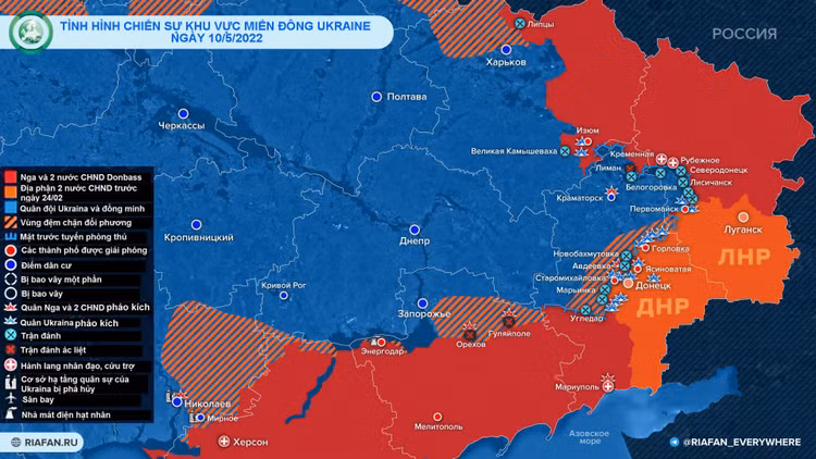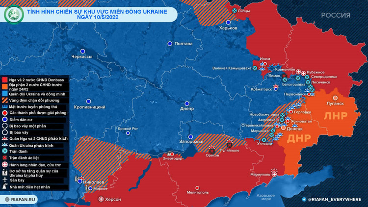 Tình hình chiến sự miền Đông Ukraine ngày 10/5/2022. Ảnh RIA.FAN