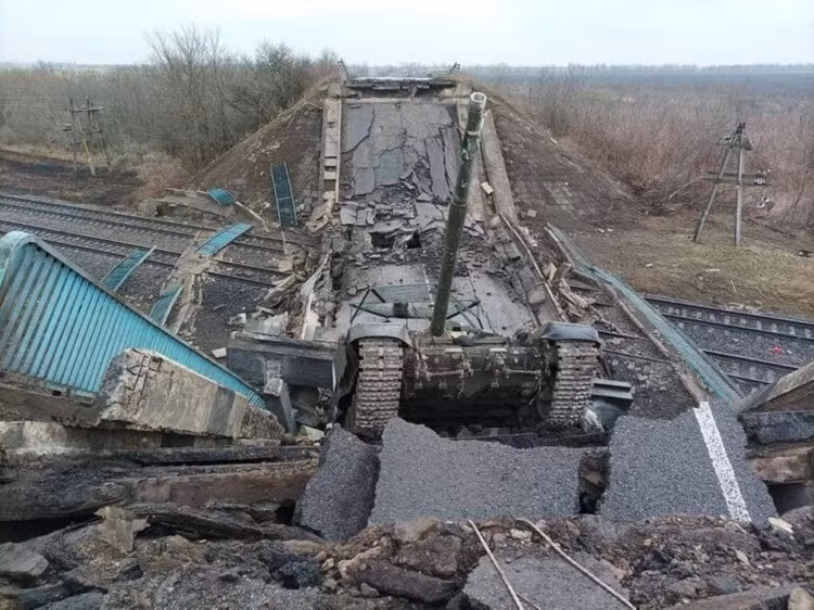 Một trong những cây cầu đường bộ trên đường tiếp cận làng Kalinovka đã bị nổ tung khi các phương tiện quân sự của Nga đi qua đó.