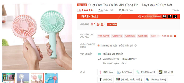 Cụ thể, trên sàn thương mại điện tử Shopee, Quạt Cầm Tay Có Đế Mini N9 Cực mát, giá 7.900 đồng ; quạt mini tích điện cầm tay usb 2 có giá 19.000 đồng; quạt Cầm Tay Mini HZGOE037 67.000 đồng,...