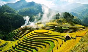 Lên Mù Cang Chải (Yên Bái) mùa này không có cảnh lúa chín vàng hay xanh rờn trên những thửa ruộng bậc thang, nhưng nhiều chỗ lại rực vàng màu của hoa cải dầu. Một vẻ đẹp mới của những thửa ruộng bậc thang nơi này.