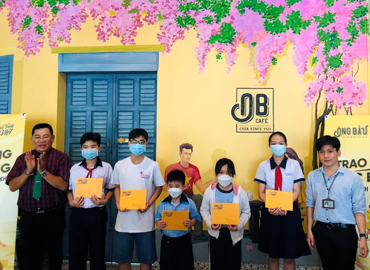 Chương trình trao học bổng diễn ra tại cà phê Ông Bầu, 635 Điện Biên Phủ, phường 25, quận Bình Thạnh và J3 Bửu Long, phường 15, quận 10, TPHCM.