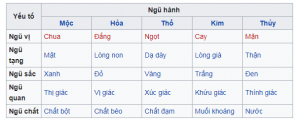 Bảng âm dương ngũ hành trong ẩm thực Việt.