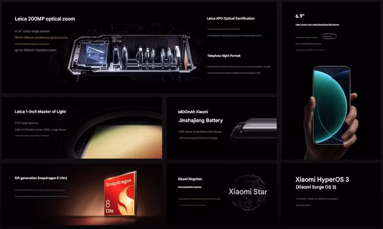 Ngoài camera, các thông số kỹ thuật còn lại cũng thuộc hàng cao cấp. Điều đó bao gồm Snapdragon 8 Elite Gen 5, chip xử lý hàng đầu hiện nay của Qualcomm.