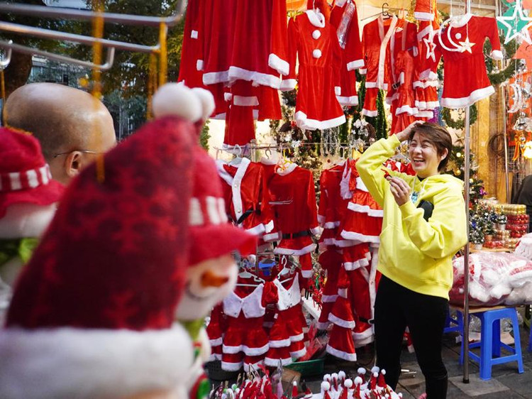 | Nhiều người dân Thủ đô nô nức đi mua sắm đồ Giáng sinh trên phố Hàng Mã. |
