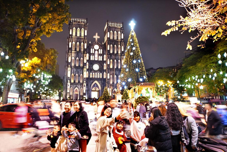 Một số hình ảnh rực rỡ sắc màu Noel 2022 ở Hà Nội và TPHCM: