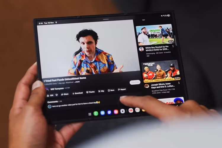 Ngoài ra, nhờ vào tỉ lệ 16:11 mới, Galaxy Z TriFold mang lại trải nghiệm sử dụng tựa như một mẫu máy tính bảng thực sự khi giao diện, thao tác sử dụng sẽ có khác biệt khi cầm ngang hoặc dọc. Điều đó hoàn toàn khác với mẫu điện thoại gập 2 truyền thống vốn có tỉ lệ màn hình gần như là hình vuông.