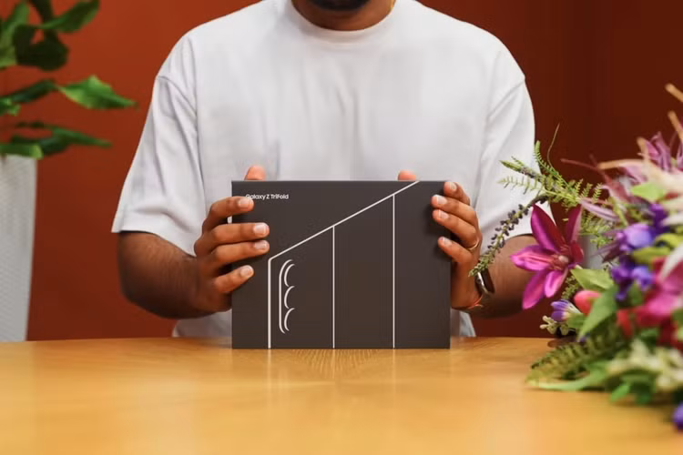 Hộp đựng của Samsung Galaxy Z TriFold sẽ lập tức gây ấn tượng bởi độ dày của nó.