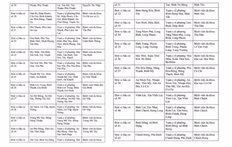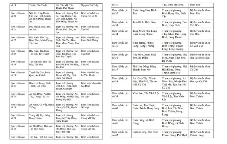 Theo kế hoạch của Sở Y tế TP.HCM, các bệnh viện, trung tâm cấp cứu và trạm y tế trên địa bàn sẽ bố trí nhân lực, phương tiện và thuốc men nhằm đảm bảo chăm sóc sức khỏe cho cử tri, người ứng cử và lực lượng tham gia phục vụ bầu cử.