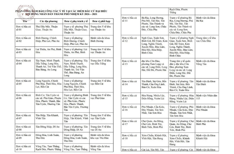 Ngày bầu cử được ấn định vào Chủ nhật ngày 15/3. Trong ngày này, các cơ sở y tế sẽ tổ chức trực cấp cứu, tăng cường giám sát dịch bệnh và bố trí lực lượng sẵn sàng xử lý các tình huống sức khỏe phát sinh tại các điểm bầu cử trên địa bàn thành phố.