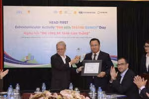 Đại diện Quỹ AIP trao thư cảm ơn cho đại diện lãnh đạo Ủy ban an toàn giao thông Quốc gia.