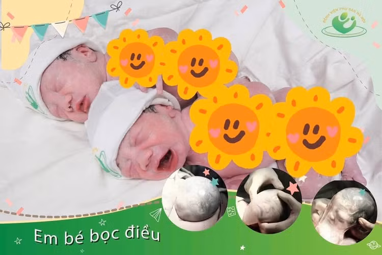 Sau đó, bác sĩ tiến hành rạch túi ối, nước ối thoát ra dần và lớp màng ối được bóc ra khỏi người bé. Cả ê-kíp thực hiện ca sinh thành công khi đón bé trai cất tiếng khóc chào đời với cân nặng 2300g. Hiện tại, sức khỏe của sản phụ và hai bé đều ổn định.