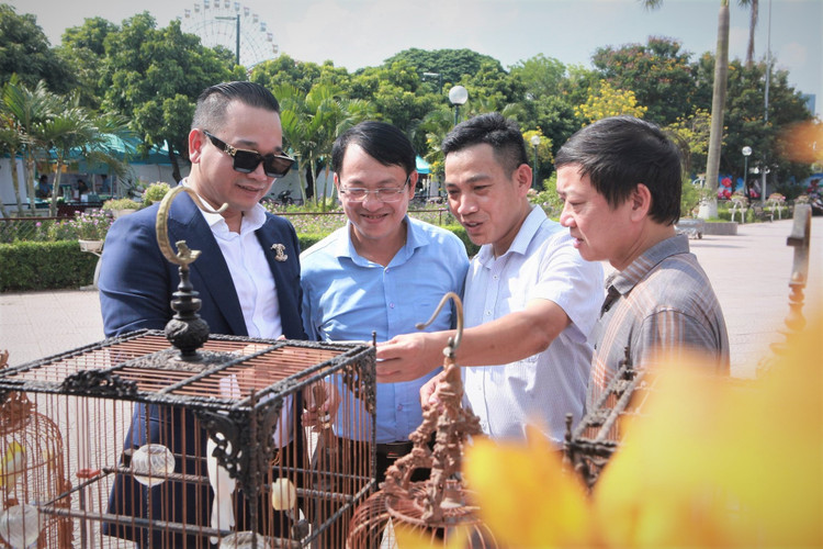Nhà báo Vương Xuân Nguyên (thứ hai từ trái sang phải) đang trao đổi với về thú chơi Sinh Vật Cảnh của người Việt