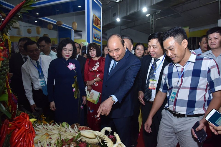 Nhà báo Vương Xuân Nguyên (bên trái) giới thiệu mọt số thành tựu Sinh Vật Cảnh với Thủ tướng Chính phủ Nguyễn Xuân Phúc
