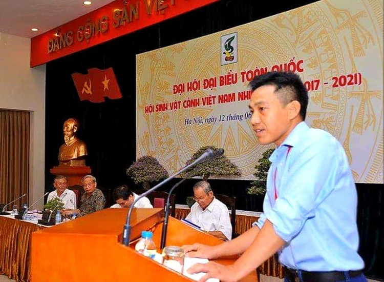 Nhà báo Vương Xuân Nguyên phát biểu tại Đại hội VI của Hội Sinh Vật Cảnh Việt Nam