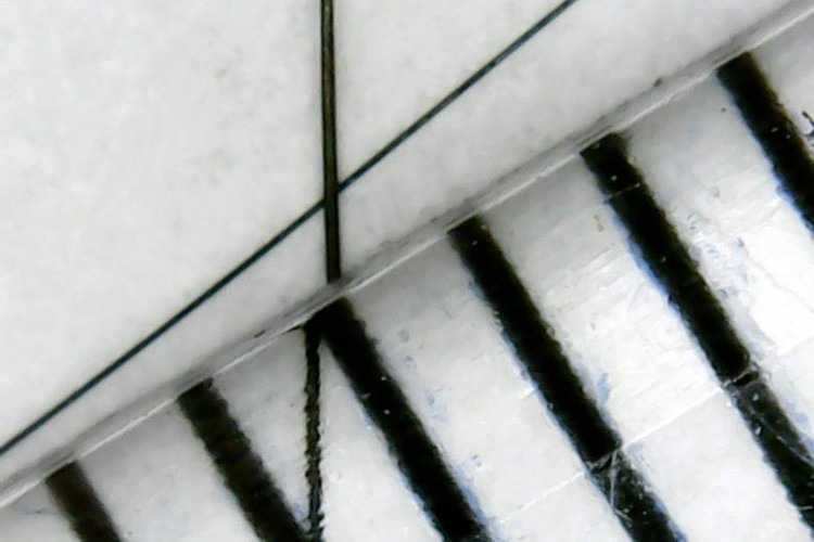 Một sợi tóc người và sợi carbon. Tóc người dày hơn (khoảng 60 micromet) so với sợi carbon phía sau. Ảnh: Nicola Ferralis