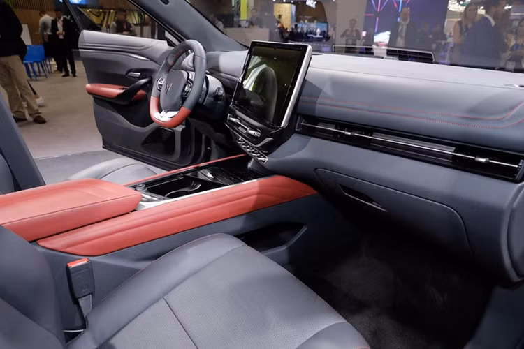 Ngay cả sự thiếu vắng của bảng đồng hồ phía sau vô lăng, cửa gió điều hòa trung tâm kẹp giữa màn hình thông tin giải trí và dãy phím kim loại, cửa gió điều hòa trải dài trên mặt táp-lô hay núm xoay chuyển số đặt gần bệ tì tay trung tâm của mẫu SUV điện này cũng tương đồng với VinFast VF6.