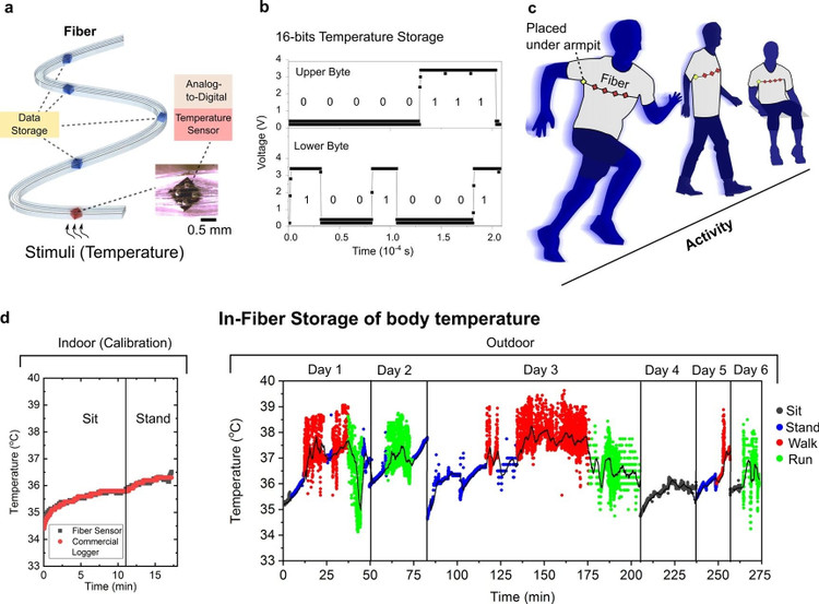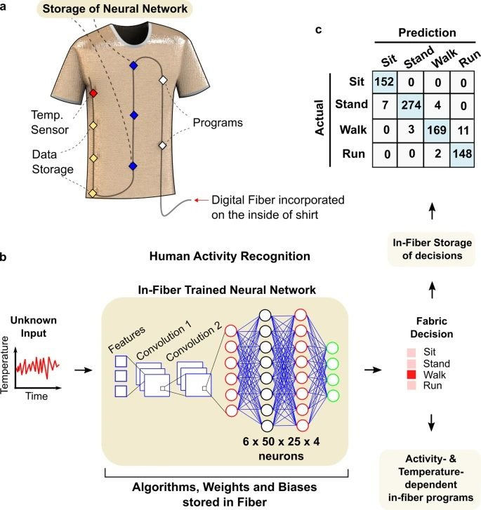 Sợi kỹ thuật số cũng tích hợp trong bộ nhớ sợi vải một mạng nơron 1.650 kết nối. Khi may sợi kỹ thuật số quanh nách áo sơ mi, Nhóm nghiên cứu sử dụng sợi kỹ thuật số để thu thập 270 phút dữ liệu nhiệt độ cơ thể của một người mặc áo sơ mi, phân tích những dữ liệu này tương ứng với những hoạt động thể chất khác nhau. Phân tích và xử lý những dữ liệu này, các sợi kỹ thuật số có thể xác định chính xác 96% những hoạt động mà người mặc thực hiện.
