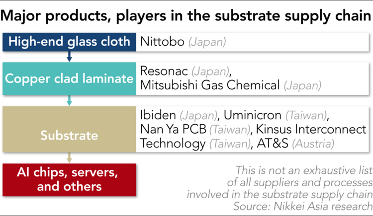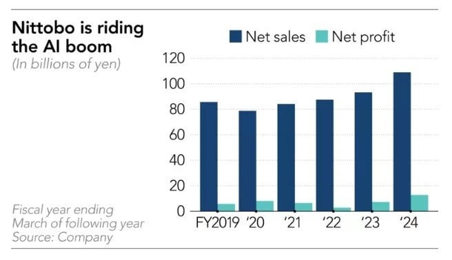 T.J. Tseng, chủ tịch của Unimicron - một trong chỉ hai nhà cung cấp cơ chất cao cấp cho chip AI của NVIDIA - xác nhận rằng những hạn chế về cơ chất chip cao cấp sẽ tiếp tục kéo dài sang năm tới. Với nguồn gốc từ một nhà máy được thành lập năm 1898, Nittobo đã ghi nhận doanh thu 109 tỷ yen trong năm tài chính trước, tăng 17% so với năm trước. Tỷ lệ lợi nhuận của công ty đã tăng vọt lên 15,1% so với 9%, chủ yếu do nhu cầu cho các ứng dụng AI.
