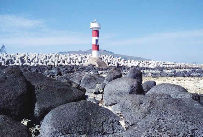 Dẫn ra Mù Cu bây giờ là con đường bê tông sừng sừng cao gần 3 mét dài hơn 300 mét. Áp sát phía ngoài là hàng vạn khối bê tông dị hình đúc sẵn 4 chấu trắng nhởn chồng chất lên nhau mà giới chuyên môn gọi là những “con giống tetrapod”. Xung quanh là đại công trình xây dựng và mở rộng âu thuyền Lý Sơn. Ngổn ngang đất đá bê tông, đào bờ xúc biển quây chặn… Nhô lên cuối con đường bê tông là cây đèn biển nhỏ, bỗng trở thành cột mốc giúp mọi người định vị được Mù Cu. Chút hơi ấm gợi ra từ cái màu sơn đỏ viền trắng đã gỉ sét bong tróc nhiều.