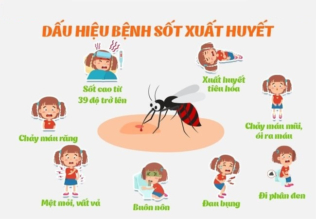Giai đoạn sốt: Trong giai đoạn này, người bệnh sốt xuất huyết thường có các biểu hiện: Sốt cao đột ngột, liên tục; Nhức đầu, chán ăn, buồn nôn; Da xung huyết; Đau cơ, đau khớp, nhức 2 hố mắt; Thường có chấm xuất huyết dưới da, chảy máu chân răng, hoặc chảy máu mũi…
