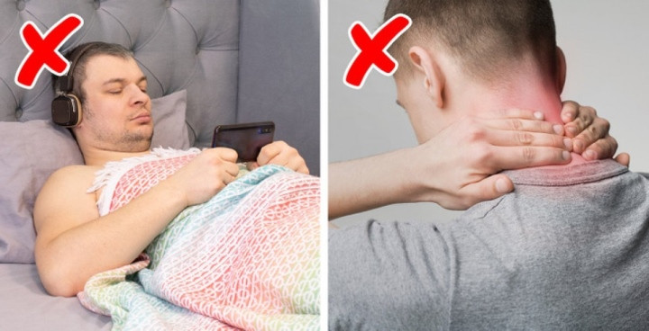 Nếu bạn đã quen với cảm giác đau cổ khó chịu, thì việc sử dụng điện thoại trên giường có thể khiến tình trạng bệnh hiện có thậm chí trở nên tồi tệ hơn. Khi bạn nghiêng đầu về phía trước để nhìn vào màn hình, các cơ ở cổ sẽ bị căng, gây đau. Nếu bạn không thể tưởng tượng được việc đi ngủ mà không kiểm tra điện thoại, hãy thử cầm điện thoại ngang tầm mắt để tránh làm căng các cơ.