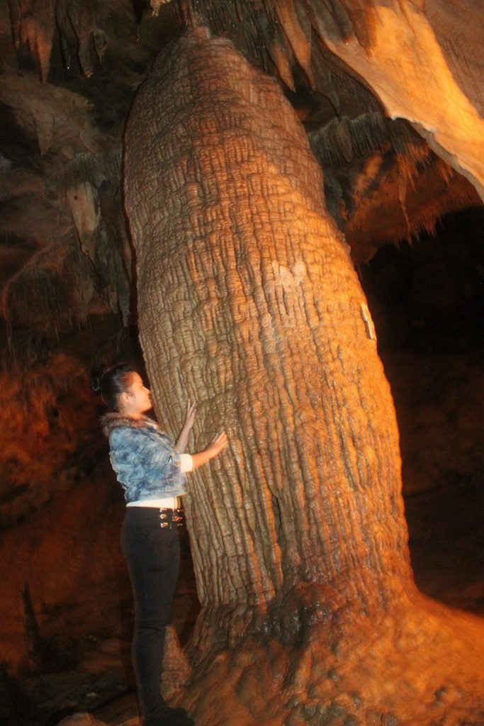 Phía dưới có một cột nhũ đá lớn 5 người ôm không xuể mà theo như người Trùng Khánh đó là cột chống trời. Nhiệm vụ hình phạt của cô tiên là phải canh giữ cột đá này để đảm bảo cho thiên đình không bị kẻ xấu xâm hại đến.
