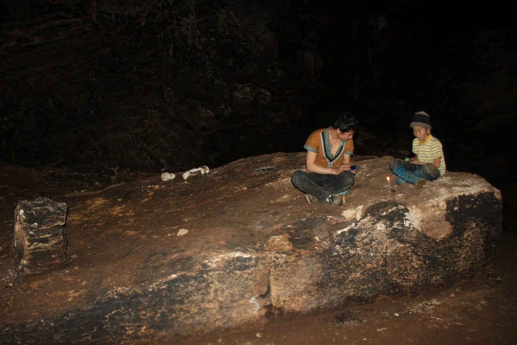 Soi pin, đốt đuốc và dùng những vỏ trấu vừa đi vừa rắc để đánh dấu đường vào, chúng tôi mới được tận mắt chứng kiến quang cảnh bên trong với nhiều điều thú vị.