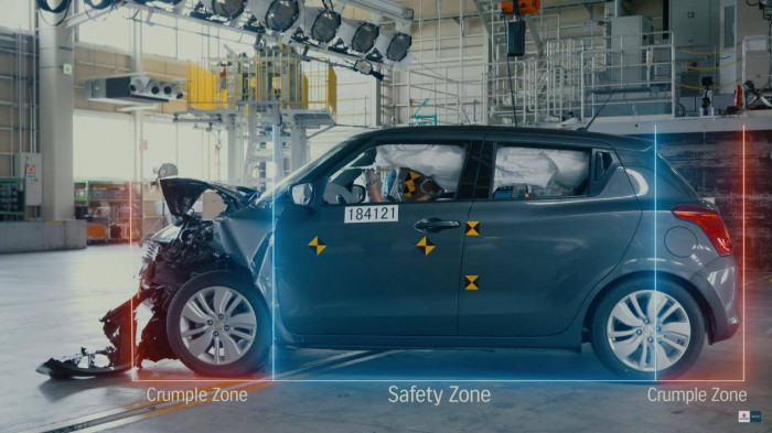 Suzuki Swift bao gồm vùng không thể phá hủy và vùng có thể vỡ ra để hấp thụ lực tác động.