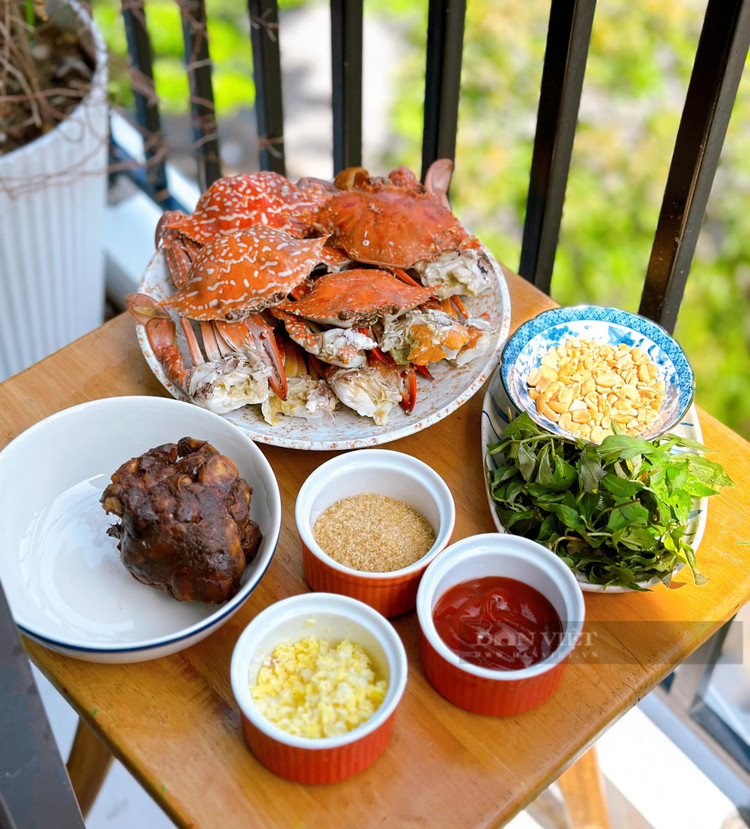 - Cho ghẹ ra dĩa cùng ít rau răm và rắc lên trên ít đậu phộng rang, ăn kèm bánh mì.