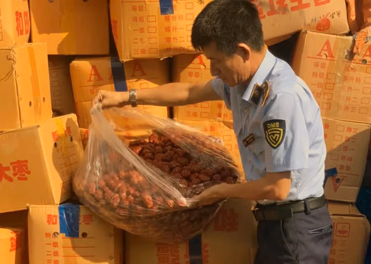 Ngày 9/6, Đội Quản lý thị trường số 11, Chi cục Quản lý thị trường TP Hà Nội đột xuất kiểm tra hộ kinh doanh của bà Bùi Thị Thủy tại số 40, tổ 12 Trinh Lương, phường Phú Lương (quận Hà Đông), phát hiện và tạm giữ 4.300 kg táo đỏ khô.