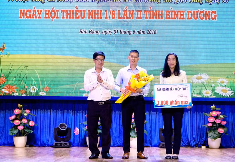 Sáng 1/6, ngày hội diễn ra tại hội trường UBND huyện Bàu Bàng có sự tham dự của các cơ quan ban ngành trong tỉnh, đại diện Tập đoàn Tân Hiệp Phát, các doanh nghiệp, cùng với hàng trăm em thiếu nhi có hoàn cảnh khó khăn, học giỏi trên địa bàn huyện Bàu Bàng.