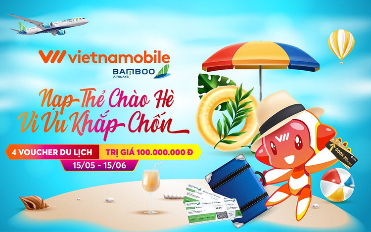 Tiếp nối hiệu ứng từ những phản hồi tích cực của khách hàng dành cho chương trình Khuyến mãi mừng sinh nhật Vietnamobile “Nạp thẻ liền tay, rinh ngay xế mơ”, Vietnamobile cùng với Bamboo Airways gửi tặng tới khách hàng chương trình “Nạp thẻ chào hè, vi vu khắp chốn” với loạt giải thưởng vô cùng hấp dẫn là 4 combo nghỉ dưỡng trong nước trị giá 25.000.000đ/combo, 8 vé máy bay Bamboo Airways trị giá 7.000.000đ/vé được tài trợ bởi Bamboo Airway áp dụng cho tất cả các chặng bay nội địa (không áp dụng cho đường bay Côn Đảo) và 200 phiếu mua sắm trị giá 500.000đ/phiếu.