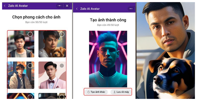 Khi nhập thông tin về giới tính, độ tuổi, có 6 phong cách ảnh được Zalo thiết lập sẵn để “khách” lựa chọn. AI sau đó tự động xử lý khuôn mặt trong hình ảnh gốc tải lên để "biến hình" và tạo thành avatar hoàn chỉnh. Người dùng hào hứng chờ nhận kết quả để khoe với bạn bè.
