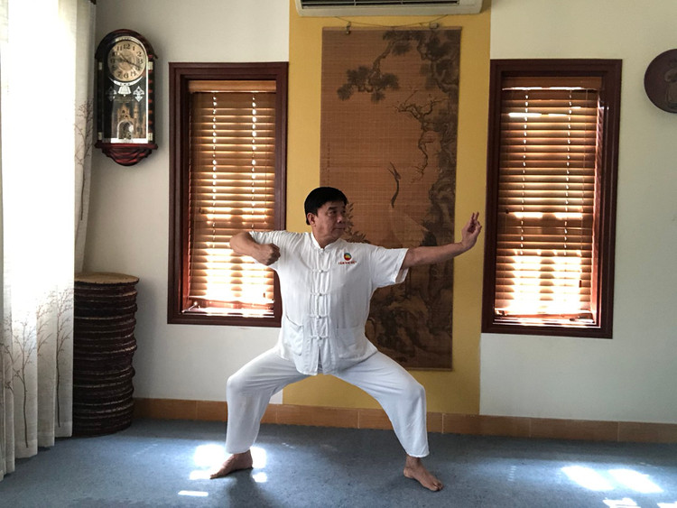 | Ông Nguyễn Ngọc Dũng, Chủ tịch sáng lập học viện Tâm khí Việt hướng dẫn bài tập |