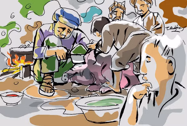 Nghe mẹ thông báo, tôi thấy vui. Bởi, đã từ lâu, mỗi khi Tết tới, mẹ thường ra chợ mua thịt lợn về nấu bánh chưng, sửa soạn cỗ Tết, chứ không “ăn đụng”. Tôi nghĩ năm nay, nhà mình sẽ làm cỗ to và rất vui khi con cháu đủ đầy để Tết thêm phần tươm tất.