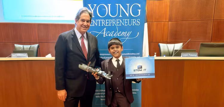Khi 12 tuổi, Nandyala đã thành lập là điều hành Công ty STEM IT, chuyên cung cấp các phần mềm AI. Ảnh: YEA! Frisco