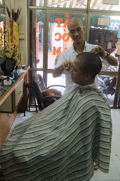 Chúng tôi rẽ vào một hiệu cắt tóc nằm trên con phố Kim Hoa, hiệu của anh Nguyễn Đức Dũng, người từng gặt hái được nhiều giải thưởng. Tuy là thợ tóc, nhưng anh không để kiểu tóc nào cho hợp thời trang. Tóc đã bạc gần hết, anh cho đồng nghiệp cạo đi.