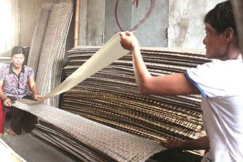 Ông Trần Văn Tường không cần cần phải nhẩm tính cũng thống kê được: “Làng tôi có 200 hộ dân với 850 nhân khẩu thì 90% trực tiếp làm bánh đa nem, 10% còn lại thì làm “cai bánh” tức là thu mua bán ra thị trường. Người lớn hay trẻ em đều làm được nghề và cho ra sản phẩm tinh túy nhất”.