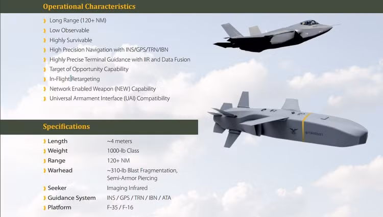 Chiều dài chỉ vỏn vẹn 3.9 mét và khối lượng phóng khoảng 540kg, tên lửa SOM-J dễ dàng tích hợp dưới cánh hoặc trong khoang máy bay, giảm thiểu gánh nặng cho phi cơ mà vẫn đảm bảo sức hủy diệt khủng khiếp.