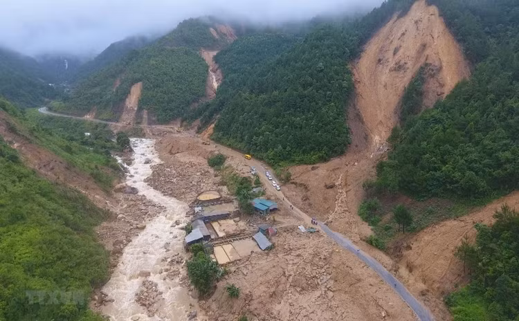 Mưa lớn có nguy cơ xảy ra lũ quét, sạt lở đất, sụt lún đất trên sườn dốc. Ảnh nchmf