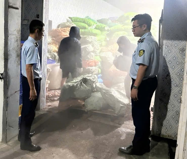 Lực lượng chức năng kiểm tra, thu giữ lô chân gà đã bốc mùi - Ảnh Chi cục QLTT tỉnh Quảng Ninh