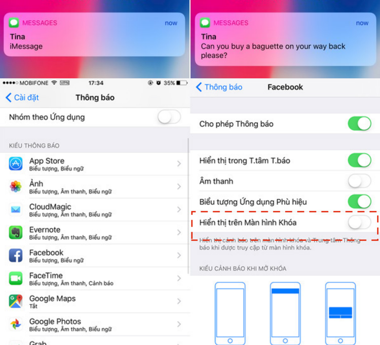 Không hiển thị nội dung thông báo ngoài màn hình khoá