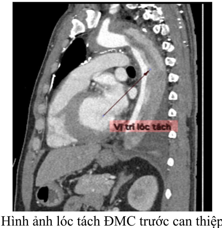 Ngay lập tức, bệnh nhân được chỉ định chụp MSCT mạch máu, kết quả: lóc tách động mạch chủ ngực cấp tính lan xuống động mạch chủ bụng, nguy cơ vỡ động mạch và tử vong bất cứ lúc nào. Thật không may cho người bệnh vì giải phẫu vị trí lóc tách ngay sát động mạch dưới đòn trái, không đủ vị trí để đặt Stent Graft.