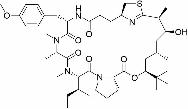 Apratoxin S4 (cấu trúc được hiển thị ở đây) có hiệu quả chống lại SARS-CoV-2 trong tế bào người và là một liệu pháp điều trị pan-viral (nhiều loại virus). Ảnh: ACS Bệnh truyền nhiễm 2022.