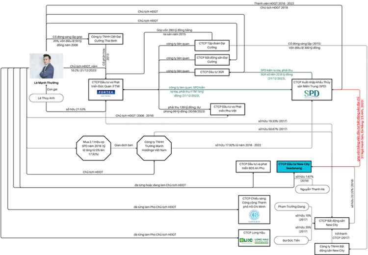 Điểm chung của những doanh nghiệp như FTM, Đầu tư 3GR hay Đầu tư New City Seadanang là có ông Lê Mạnh Thường nắm giữ vị trí Chủ tịch HĐQT. Điều đó cho thấy mối liên hệ mật thiết giữa ông Thường với các khoản nợ xấu của SPD.